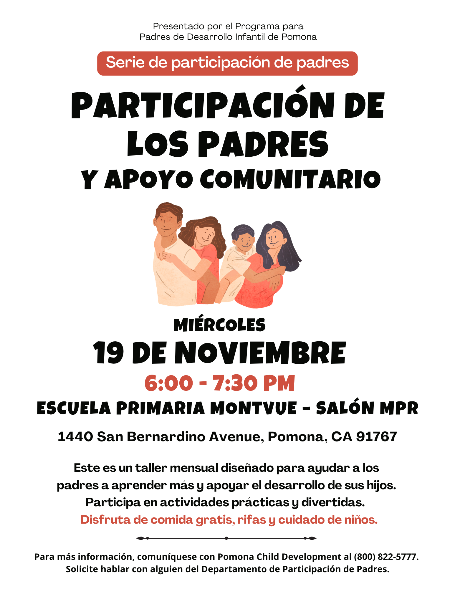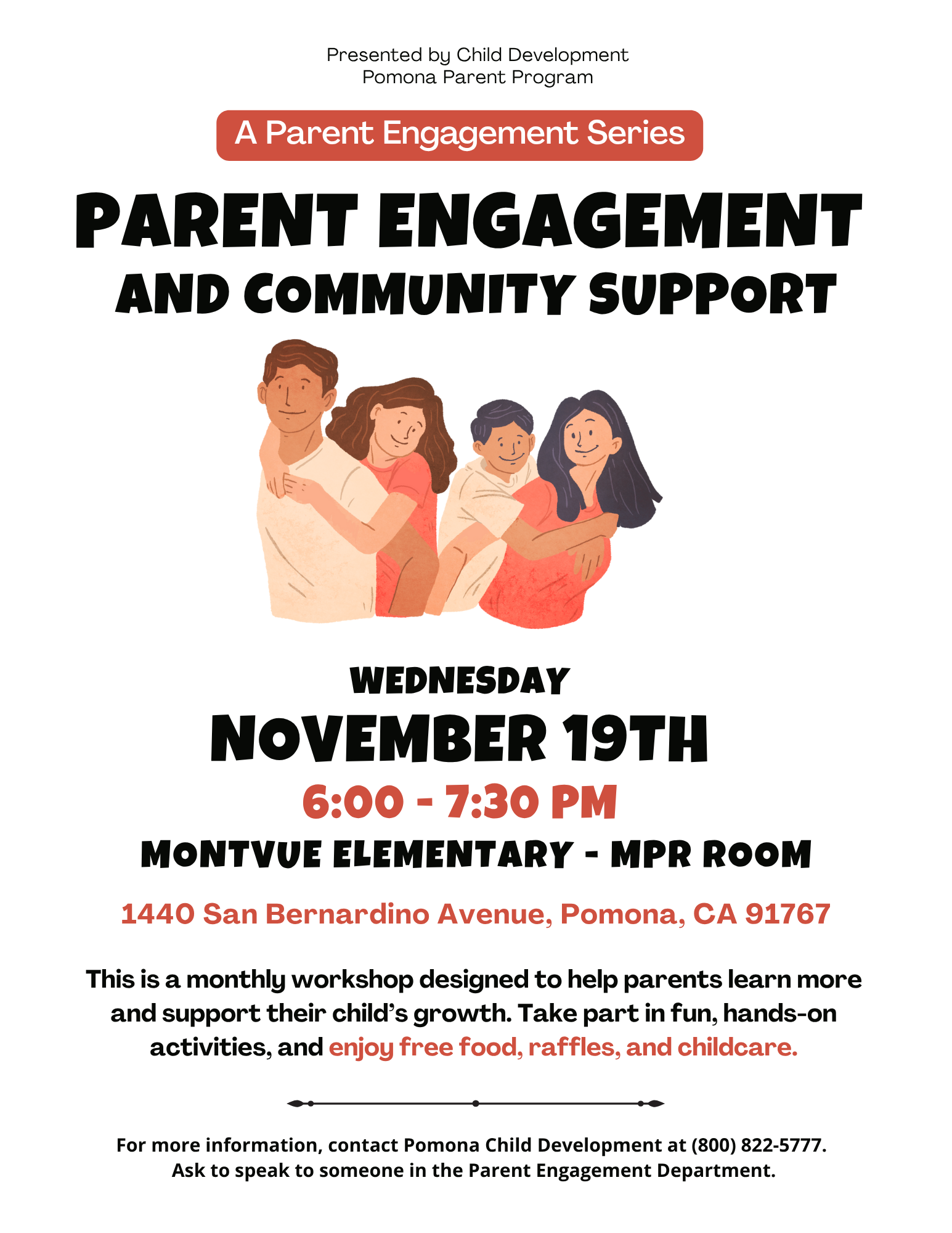 For more information, contact Pomona Child Development at (800) 822-5777. Ask to speak to someone in the Parent Engagement Department.